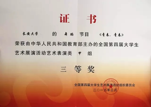 6. 舞蹈《小城雨巷》荣获第十二届陕西省“校园之春”舞蹈大赛省级三等奖。