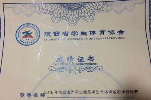 5.2016年陕西省大学生健美操艺术体操啦啦操锦标赛荣获第三名。