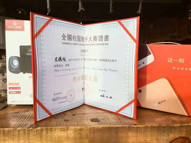 程彦棚、左璐阳同学在歌者盟全国校园歌手大赛中进入西部赛区五强。